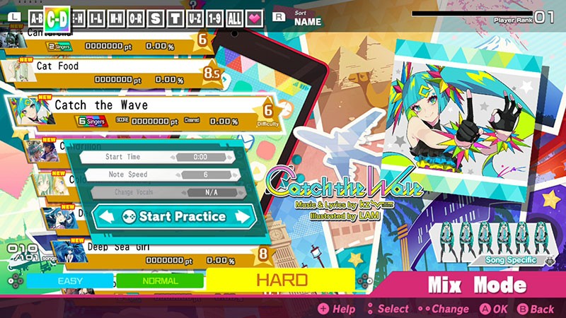 Mega Mixin teemakappale Catch The Wave on ilahduttava banger. Sen pelattavan version sangen herttaisessa animoidussa musiikkivideossa nähdään Miku vocaloid-ystävineen matkustelemassa ympäri maailman.