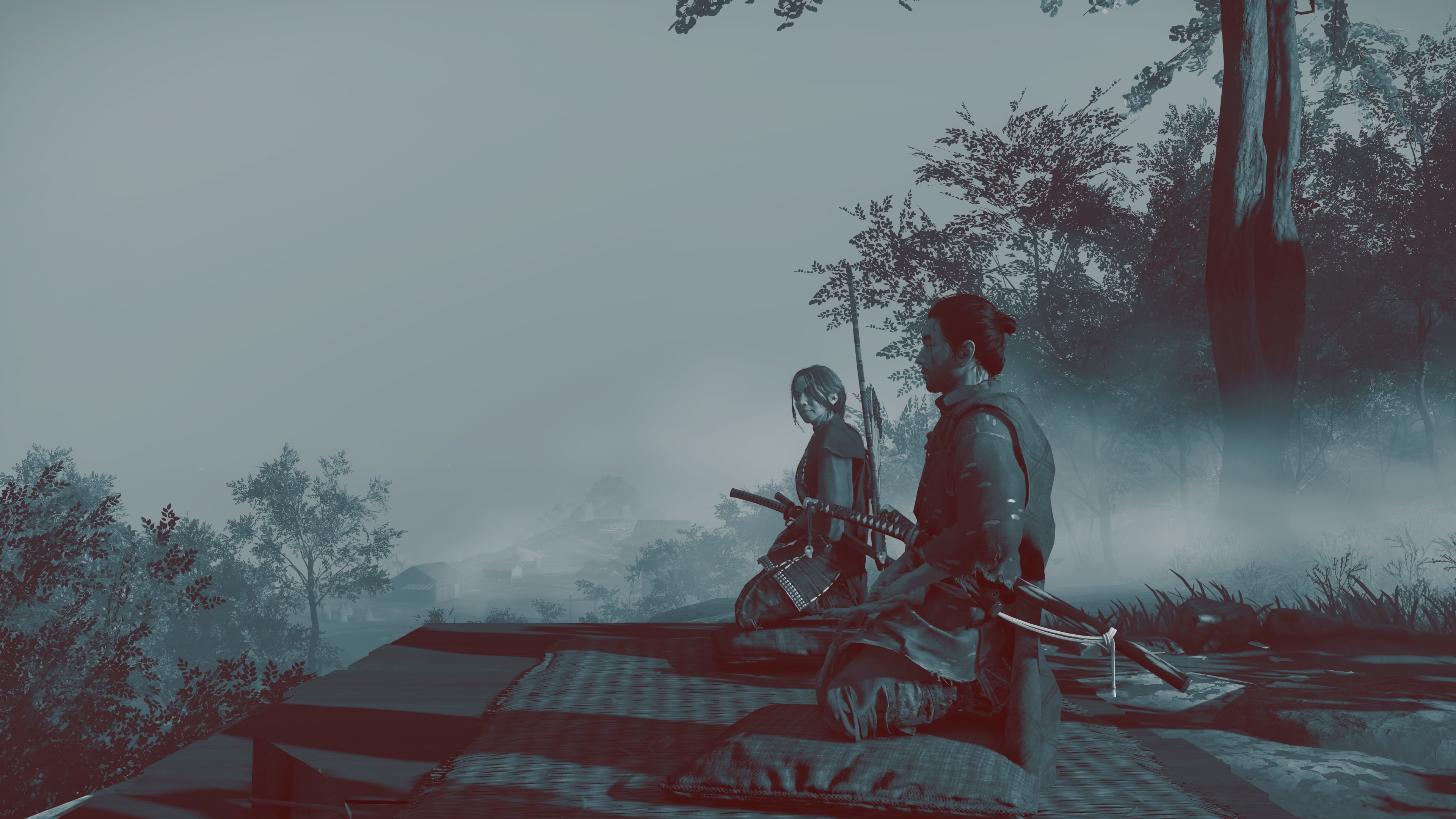 Akira Kurosawan visuaaliselta estetiikalta avoimesti lainaava teos näytti jo PlayStation 4 Prolla erinomaiselta. Saipa peli aiemmin tänä vuonna PlayStation 5:lle ilmaisen päivityksen, joka nosti ruudunpäivitysnopeuden 60 ruutuun sekunnissa taaksepäin yhteensopivuuden kautta. Siinä mielessä natiivi PS5-versio ei häikäise näyttävyydellään, vaikka muutamia graafisia parannuksia onkin tarjolla. Valaistukset näyttävät entistä paremmilta, eikä tekstuureissa näy enää pieniä rosoisuuksia. Faktahan on, että Ghost of Tsushima näyttää julmetun hyvältä jo pelkästään taidetyylinsä ansiosta. Värikäs luonto, tuulen puhaltama heinikko, tunnelmalliset hautausmaat – kaikki istuvat täydellisesti itämaiseen ympäristöön.