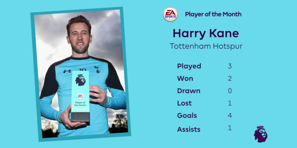 Englannin Valioliigan Tottenham Hotspurissa pelaava hyökkääjä Harry Kane on valittu EA Sportsin helmikuun kuukauden pelaajaksi.