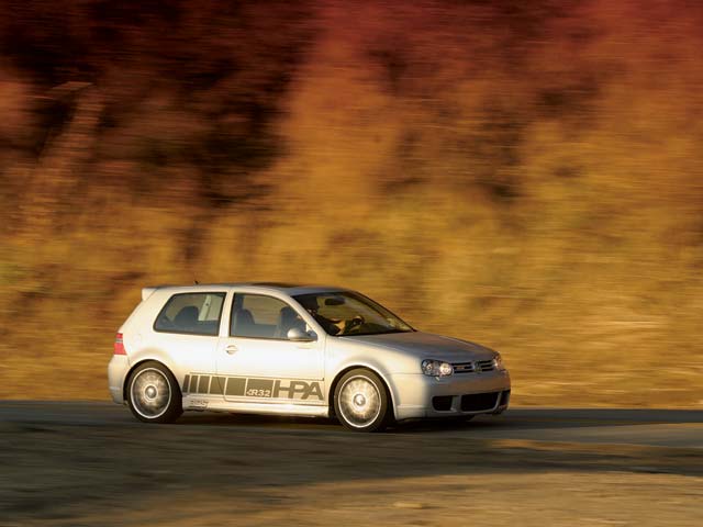 Tällä kertaa kunnia osui HPA Motorsportin virittämälle, uuden karhealle Volkswagen Golf R32:lle, jonka 3,2 litraisesta V6-moottorista on tuplaturbojen avulla riuhdottu ulos 550 hevosvoimaa. Autoa pääsee siis koeajamaan näillä näkymin ensi vuoden alkupuolella, kun Gran Turismo 4 (ehkä) julkaistaan.